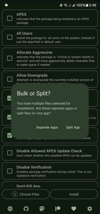 v0.8.0install with options是专为安卓用户推出的一款手机APK安装辅助工具,软件的界面设计非常简约,用户可以通过软件对安装包的来源、详细信息等内容快速进行扫描。而且还支持对安装包的安装过程进行各种个性化设置,让用户的软件使用过程更加符合自己的使用习惯,傻瓜式的操作防止帮助没有使用过类似软件的用户可以快速上手了解软件的所有功能。