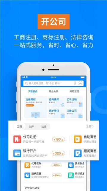 3、诸多公司服务等你体验,一键注册自己的公司,简单而方便。