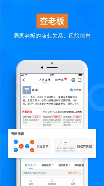 2、查询老板信息,了解他的交际圈,判断与他合作的风险指数。