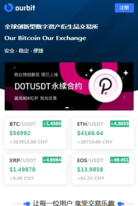 v6.145.0欧比特交易所(Ourbit)是一款很不错值得推荐的虚拟货币交易平台,平台交易十分的便捷,让每一位炒币的用户都可以享受到交易的乐趣,每天每时每刻你都可以检测自选币种的涨跌趋势,平台拥有全套权威系统,每一位用户都可以在这里快速的实名注册、充值、交易,不要错过了。