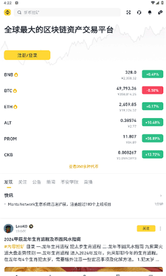 1、打开binanceAPP,点击页面上方【注册/登录】,进入注册页面。