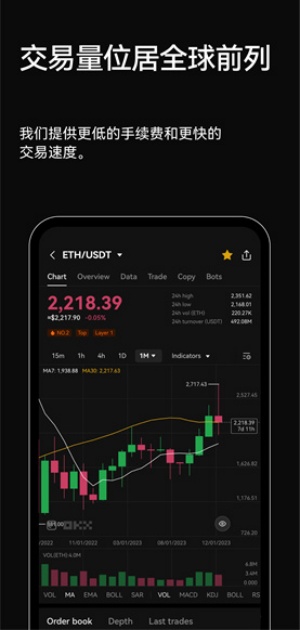 2、极速交易+安全保障,支持高速交易执行,配合顶尖的安全风控系统,全面保障用户的资产安全与交易稳定。