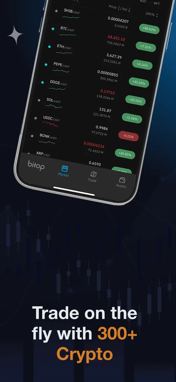 v6.145.0Bitop交易所是一款遥遥领先的加密数字货币交易平台,一站式的细腻货币交易服务和多样化的配置工具,在这里用户可以轻松的使用一款app来进行投资、理财和了解行情风向,核心团队为你带来极为安全的交易环境,用户更是遍及200多个国家和地区,让更多的用户可以加入到投资行业。