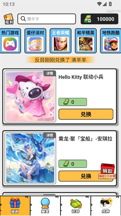 3、在主页福利界面可以兑换各种皮肤