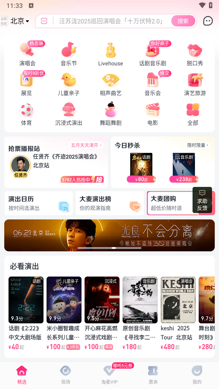 3、每天都会更新最新的演出资讯,大家可以挑选自己所喜欢的。