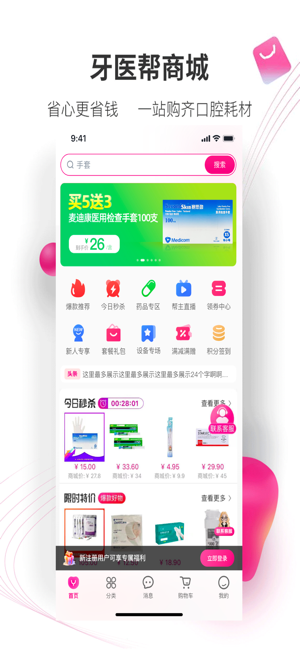 v4.0.1牙医帮是一款提供牙科医疗设备购买服务的软件神器,一键下单全新体验放心购物,可以全面的保障用户们的口腔健康问题,能够帮助用户轻松管理各种牙科医疗设备,各种器材都可以在线搜索,尤其是常见的有误以及消耗品类都能在这低价批发哦,需要的朋友快来下载吧。