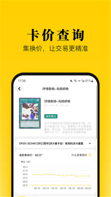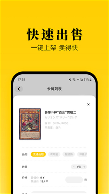 在这里不仅可以轻轻松松的进行出售和购买卡牌,而且能够让用户更快的查询卡牌的历史价格,给你带来了更多的操作帮助,打开手机就能够把自己需要出售的卡牌快速的上架,让更多的用户可以看到。