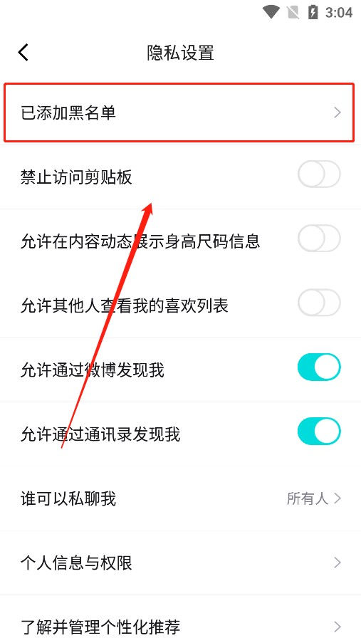4、进入到界面点击已添加黑名单,进入到界面点击取消限制即可。