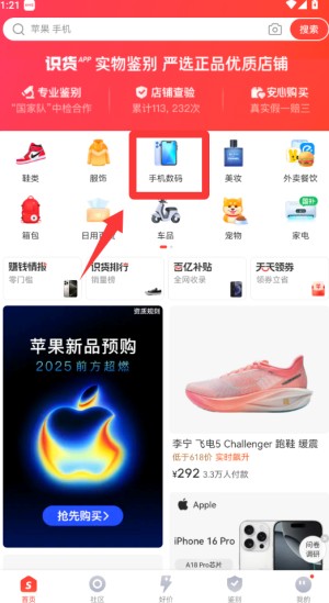 3、如果想看手机数码就可以点击红色框框那个图标。