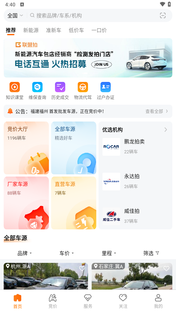 联盟拍是一款便捷的汽车二手交易平台,这里提供全国各地的二手汽车交易服务,你可以在这里按照喜欢的品牌、距离、价格等等进行筛选,快速地找到自己喜欢的二手车。软件内还有很多的车辆知识分享,以及维保查询、历史查询、物流代驾等等丰富功能等你体验。不管是卖车还是买车,这里都是不二的交易平台!