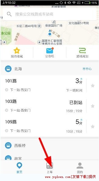 3、如果你已经在公交车上了,你可以点击“上车”,如下图: