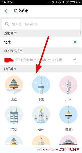 2、选择自己所在的城市,如下图: