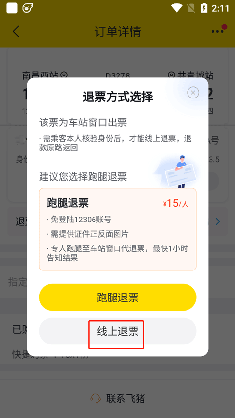 3、然后我们选择线上购票,然后通过人脸认证,确定退票即可。
