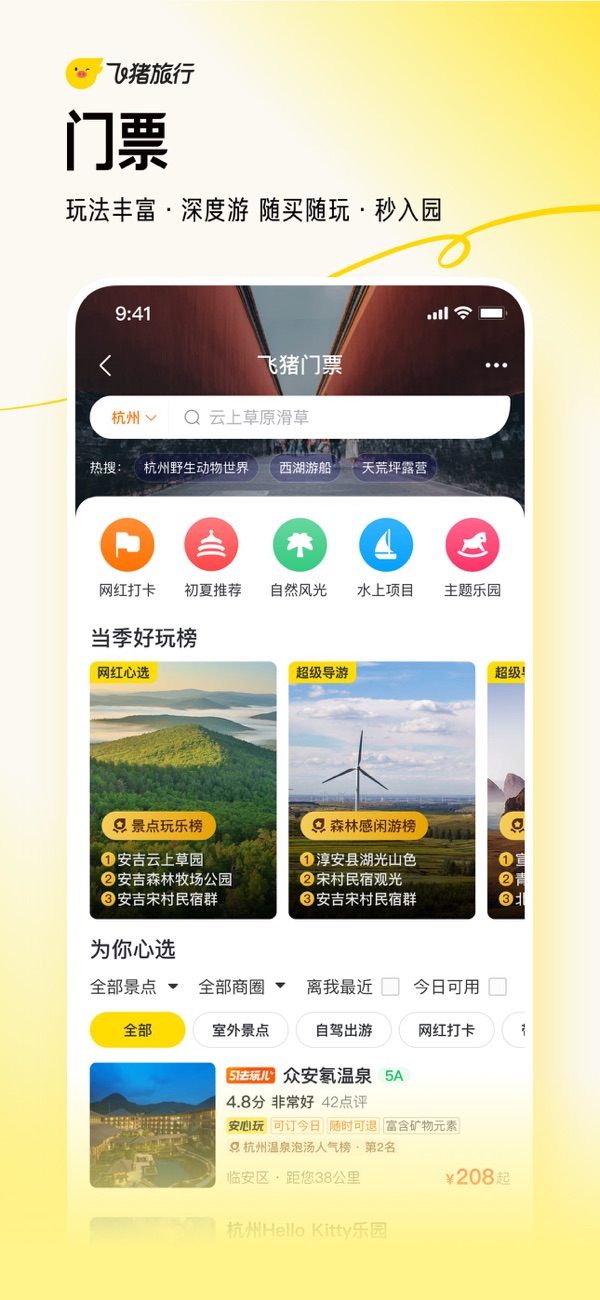 飞猪旅行ios版是旅行出行、线上购票的不二选择。软件还提供电话卡、境外Wi-Fi、租车、签证等一站式服务,支持国内外6000多家付费景点门票,线上预订一键预约,让外出旅行的你玩的轻松,绝对可以说是最佳帮手。并且,随着它的功能不断完善,吸引着越来越多的消费者选择飞猪旅行,你也快来下载体验吧。