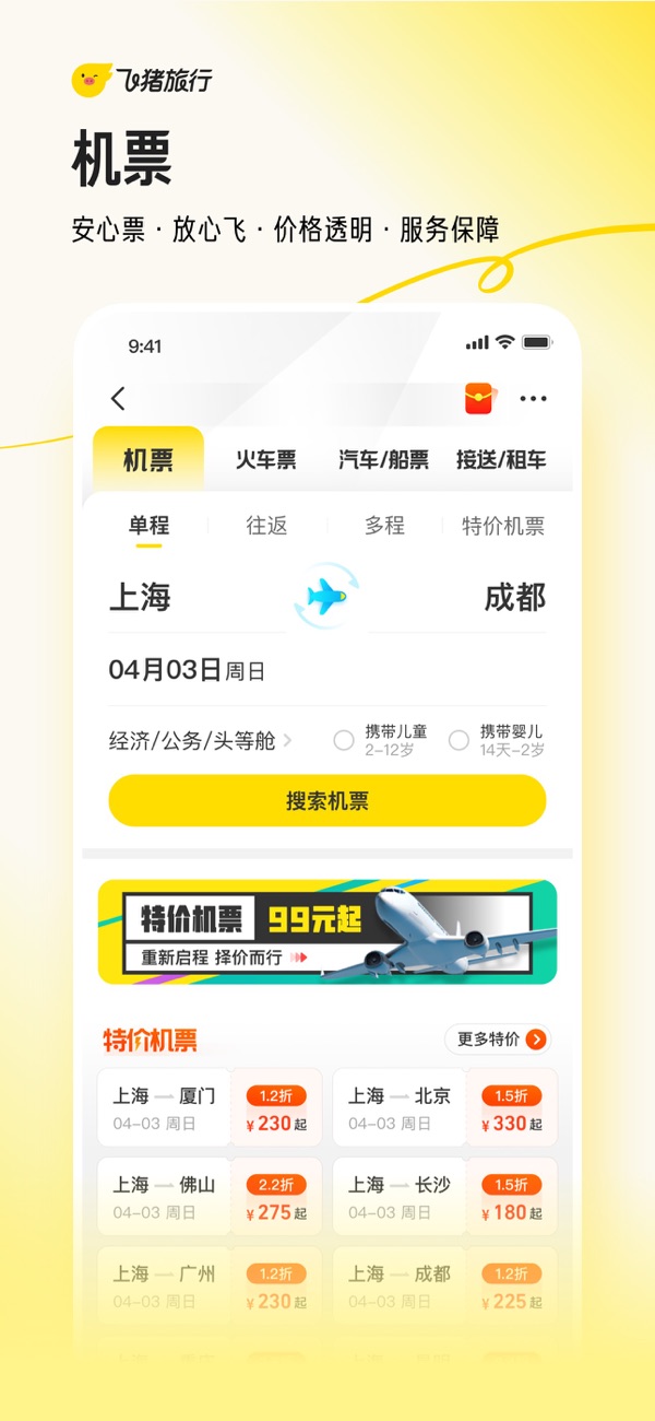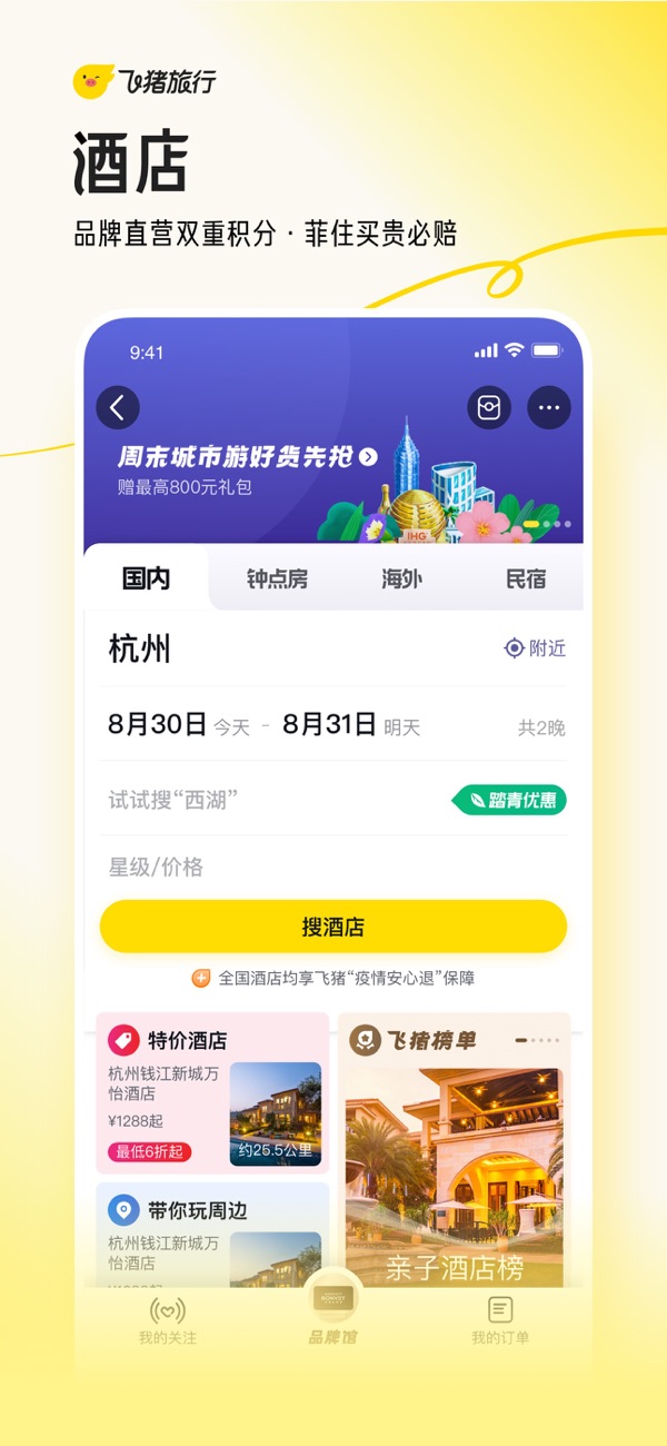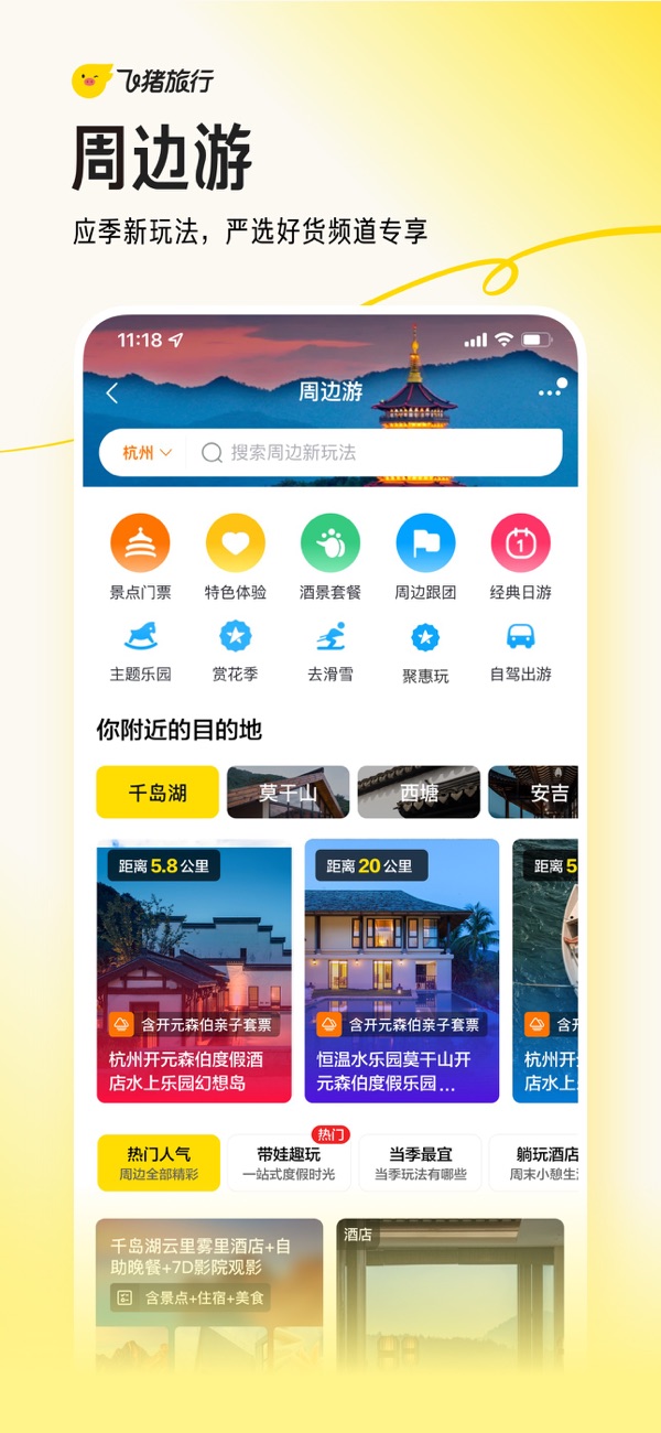 v9.10.31.108飞猪旅行ios版是一款为苹果手机以用户打造的版本,软件是国内旅游出行的不二之选,软件中用户可以自由的规划自己的行程,可以在这里制定各种旅行计划,软件会为你推荐最佳的购票选择,各种酒店、机票、景区门票你都可以在这里轻松预订,而且处境游的签证你也可以通过这款软件进行申请领取哦!