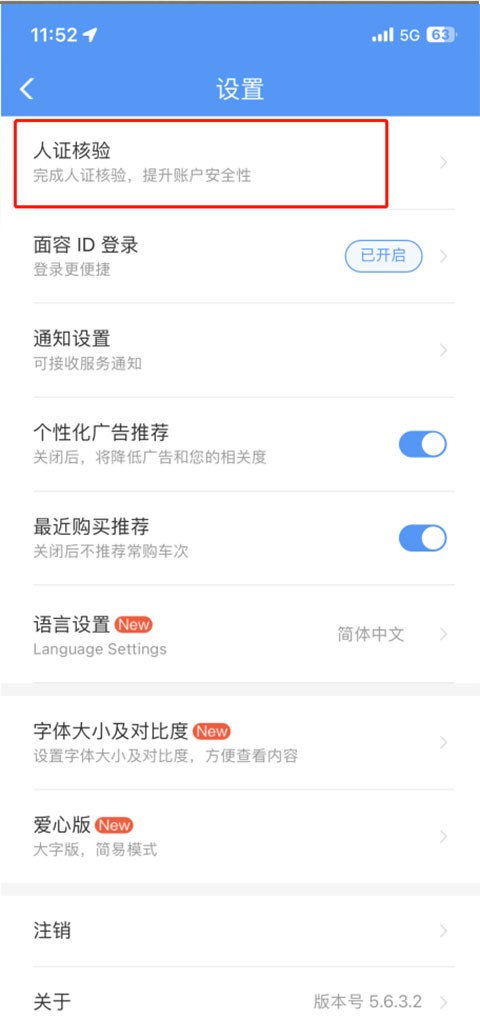 2、进入到了我的选项之后界面当中,点击列表中的人证核验 的选项。