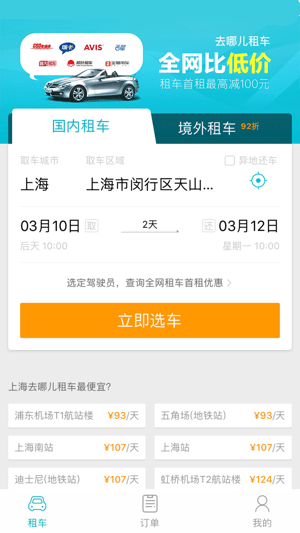2、你知道吗?在去哪儿租车app直接预定比在租车公司官网更便宜!实时比价,海量优惠。
