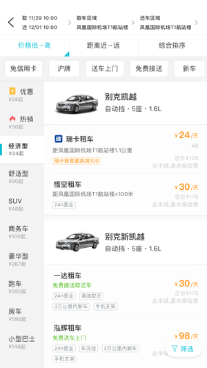 v10.4.3去哪儿租车是一款专业的租车软件,软件里的每一辆车辆都会经过详细的检测并且出示详细的检测报告,而且所有的用户都需要实名注册,可以保证每一辆车辆的安全,每次注册之前,用户可以提前购买保险,保障自己的人身安全。租车这个服务属于去哪儿旅行软件中的一个板块,这里为各位用户提供全方面的租车服务,能够让您轻松租到喜爱的车辆,并且价格十分实惠,还给到各种安全出行保障,确实每一位用户能舒适的用车。