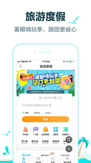 4、作为消费者欢迎、价格优惠的度假线路搜索平台,去哪儿旅行可搜索120余万条度假线路、近万个旅游景点。