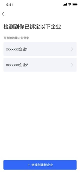 3、如该员工已绑定多个商旅账号,会进行二次验证,此时可继续点击创建新企业;