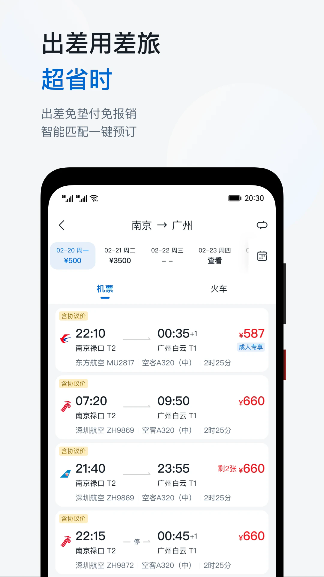 出差免垫付免报销,智能匹配一键预订