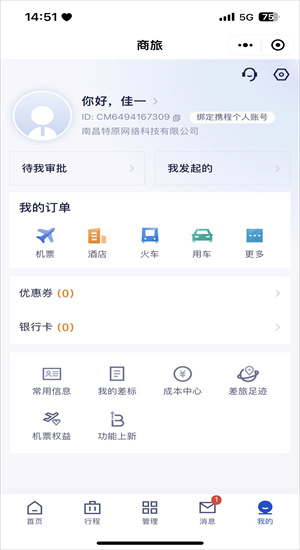 3、差旅管理:提供差旅在线管理,包括组织架构、出差申请、预订记录等,全面满足企业客户对差旅管理的需求。