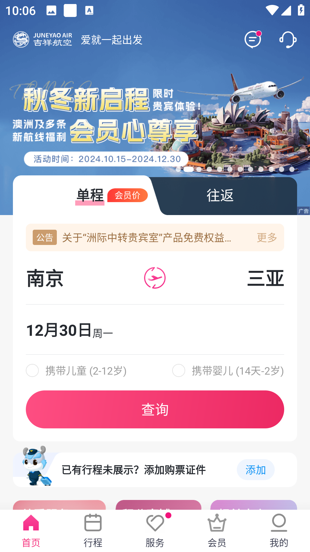 v7.13.3吉祥航空是一款国内最具性价比的航空公司,今天为大家带来其旗下的航空服务app,软件中你可以轻松的查询各种机票,让你可以轻松的在这里获取航班信息,12月还开通了墨尔本、悉尼航线,让你出行拥有了更多的航司选择,平台用户的里程积分可以用于兑换商品,会员还有超多出行权益可以获取哦!