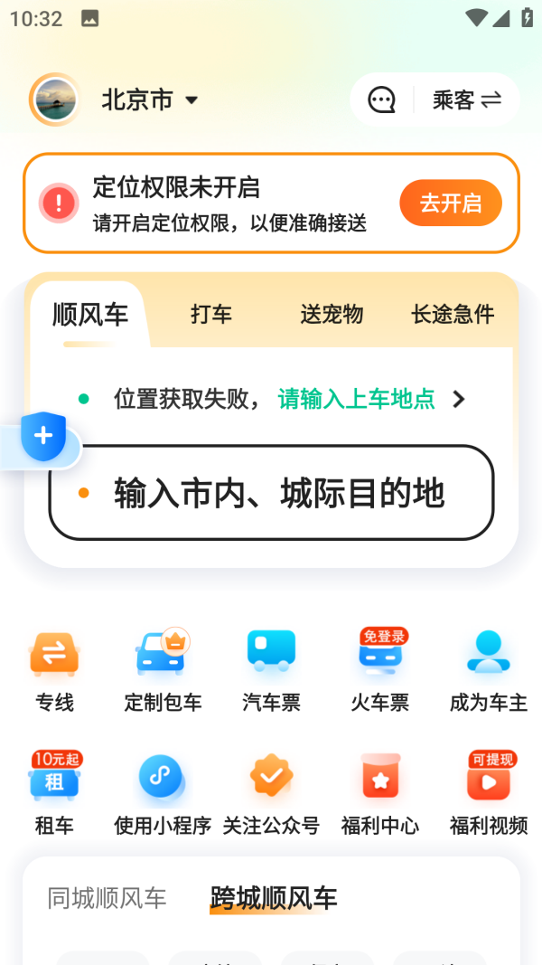 1、第一次进入软件,会弹出是乘客还是车主的选择,这里直接选择我是乘客。