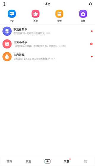 用户点击下方消息,可以查看任务消息,以及自己作品的评论、点赞以及送礼信息。