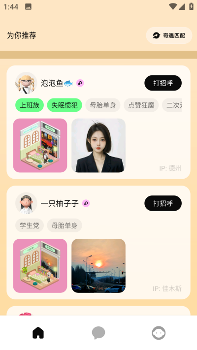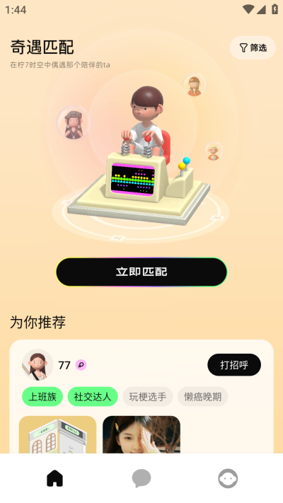 v3.8.31.7柠7是一款很符合现在年轻人喜好的聊天交友工具,用户在这里可以创建一个虚拟角色,软件中用户注册之后,可以填写自己的性别、兴趣爱好等内容,软件会根据用户的填写来为你推荐与你圈子相同的伙伴,你们可以在这个app中自由的聊天沟通,主页中你可以发布你的日常动态哦!