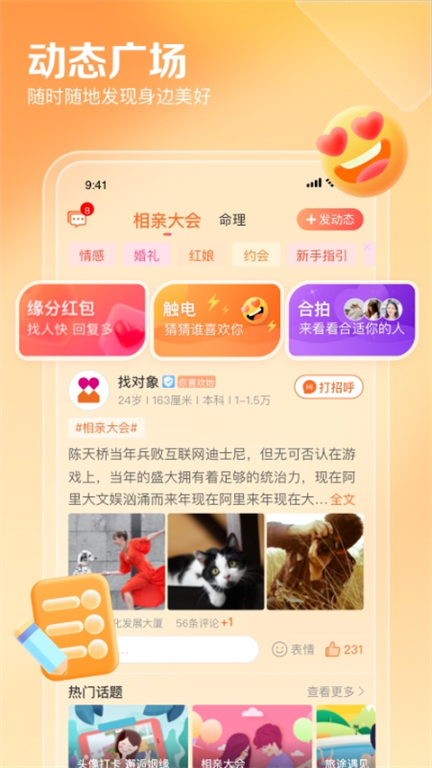 如果你因为社交圈子小而一直单身,我们的海量用户将拓展你的人际圈。让你拥有更多人脉。