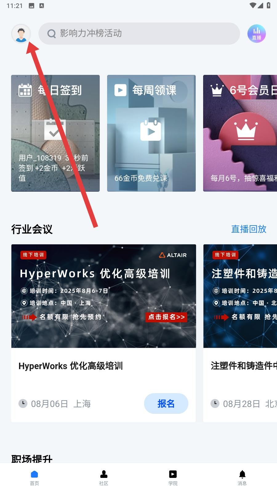 2、在应用首页,点击左上角头像图标,跳转至登录技术邻页面,开始登录操作。