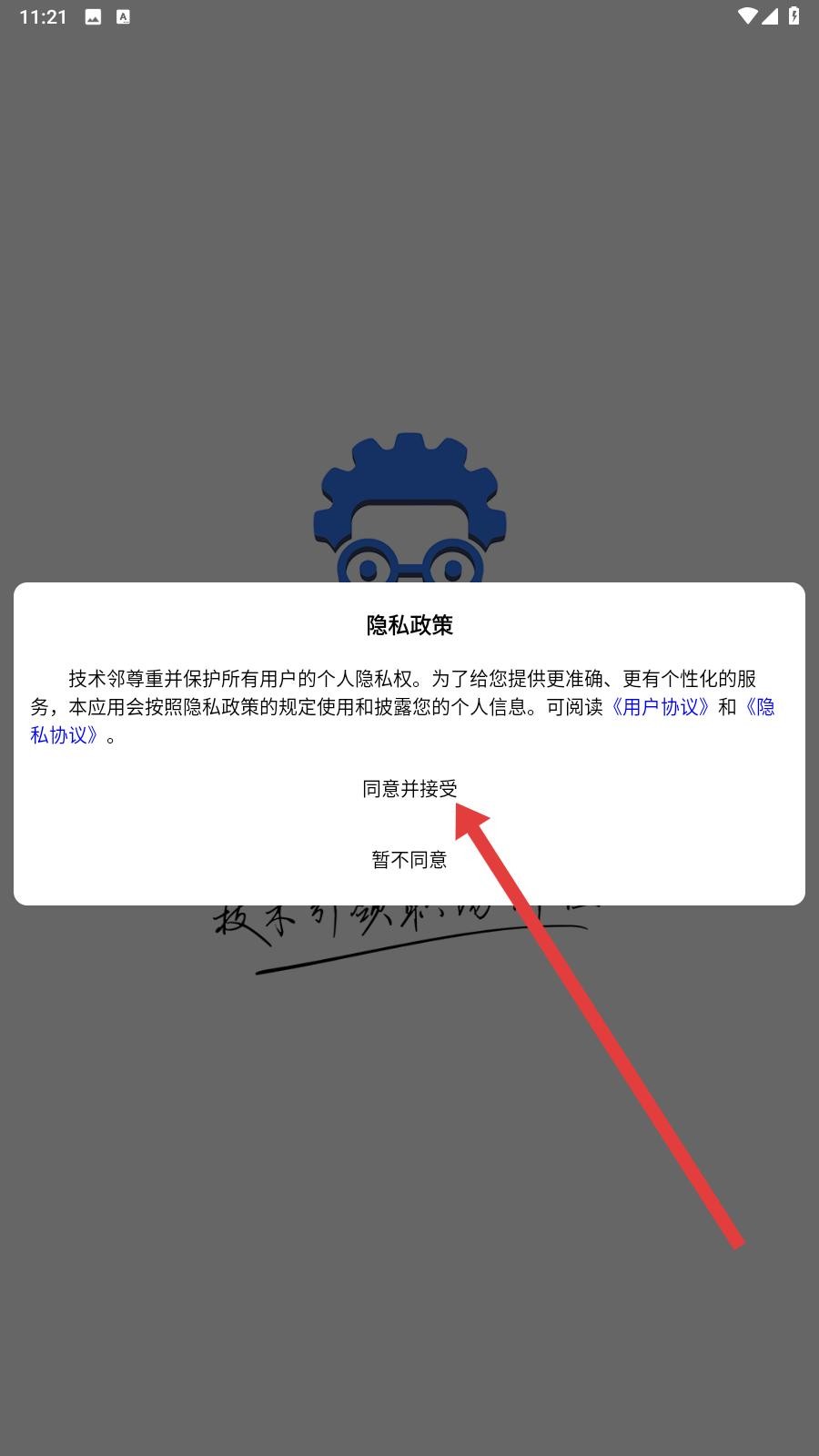 1、打开应用,弹出隐私政策窗口,仔细阅读用户协议和隐私协议内容,确认无误后点击同意并接受按钮,进入应用首页。