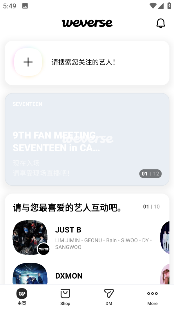 Weverse软件推荐给大家,这是一款非常受欢迎的韩流粉丝互动软件,这里拥有很多家粉丝在这里建立社区,达人社区还可以与喜欢的偶像互动,粉丝之间的信息是共享的,可以和兴趣相投的小伙伴们讨论偶像的日常,时刻分享最新的动态,喜欢的快来试试看吧!