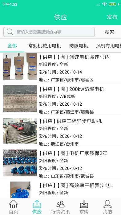 电机圈是一款专为用户提供电机行业圈子信息互动的应用软件,软件支持用户轻松发布需要的供求信息,如果你想要购买二手的电机,那么不妨来本APP看看,这里有海量产品进行出售,并且还能看到电机的详细情况,平台还提供圈友服务与行业大佬互相交流,需要的朋友可以来下载软件试试哦!