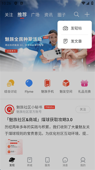 推荐内容包括官方活动、公告、产品介绍,还有科技资讯、科普文章、优秀摄影作品以及其他来自广大魅友的精华内容。