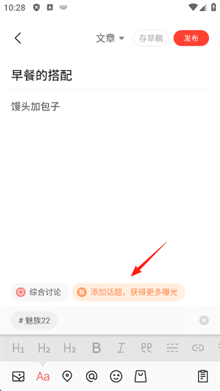 4、也可以通过添加话题来增加曝光率,点击屏幕下方的“添加话题...”。