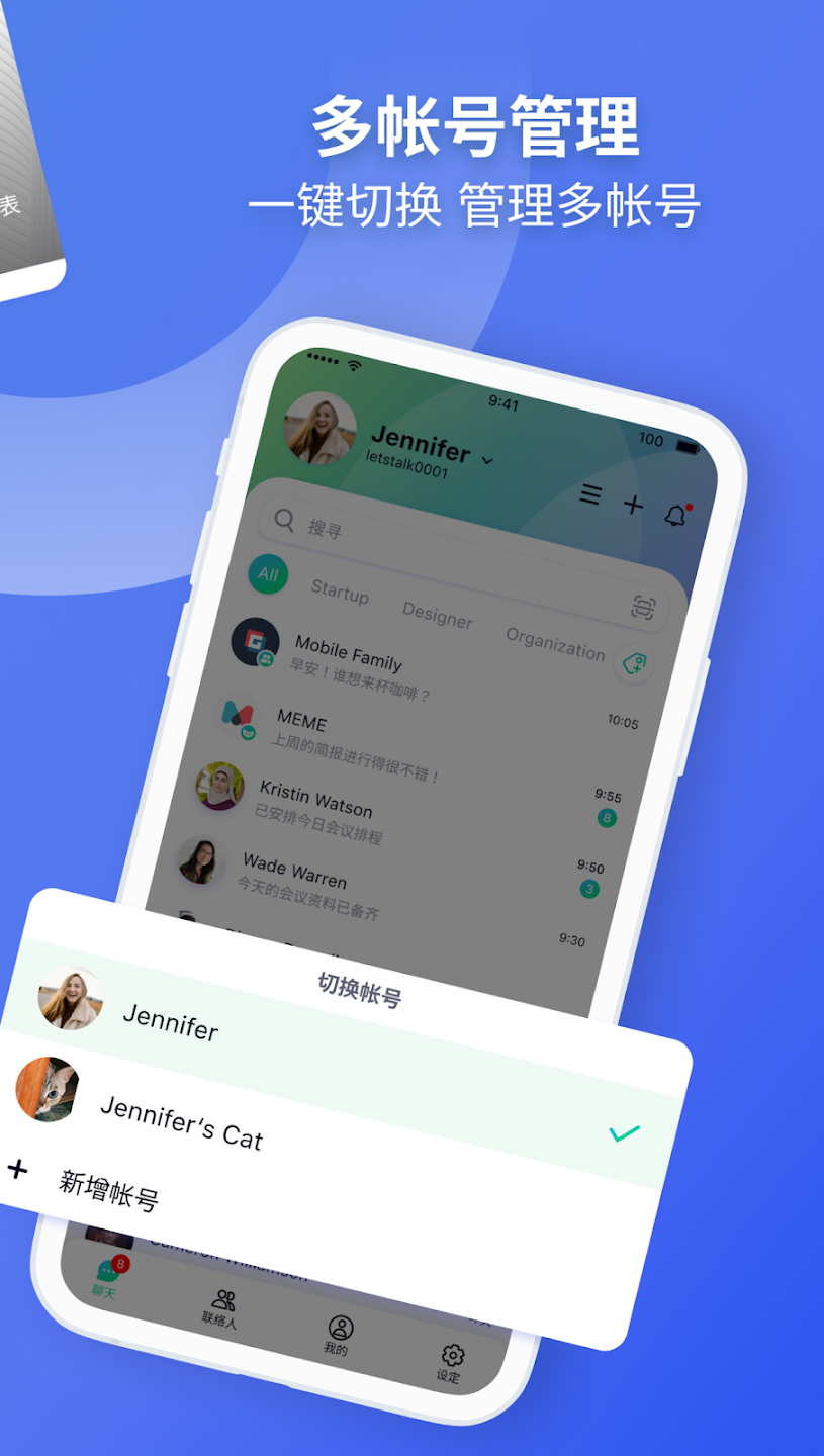 3、多帐户管理:在同一设备上登录所有帐户,并随时切换。