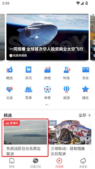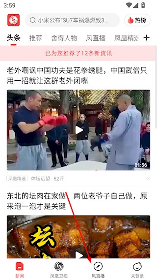 1、打开凤凰视频APP,点击下方的【风直播】;