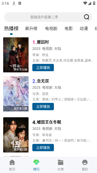 白云视频免广告是一款非常方便的追剧神器,你可以在这里免费观看所有的电视剧,这里有丰富的影视资源库,从国产到欧美日韩泰等等海外剧应有尽有,不管你喜欢什么类型的都能够在这里轻松地找到,软件每天同步更新,让你可以快速地看到最新的影视剧集,你还可以在这里找到一些热门的动漫,方便又好用!