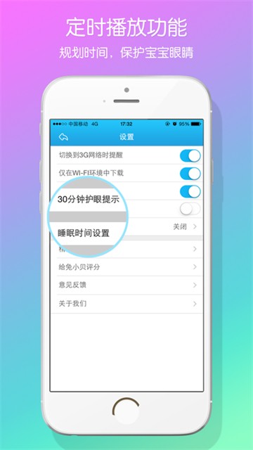 3、定时播放功能,让爸爸妈妈可以规划好时间,保护宝宝眼睛。