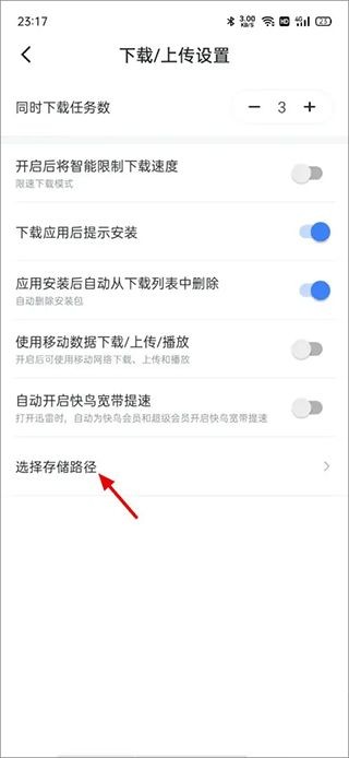 4、在下载/上传设置页面,点击选择存储路径