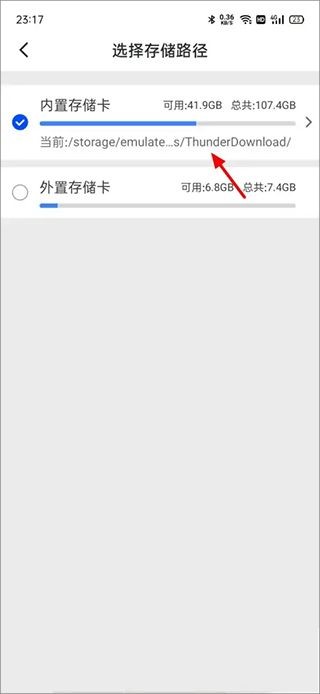 5、在选择存储路径页面,点击内置存储卡