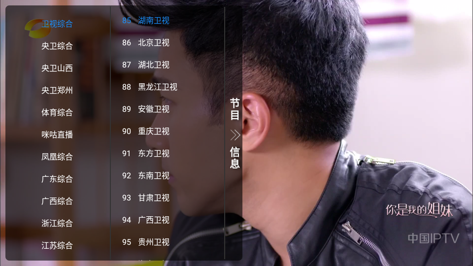 3、任意点击播放界面,我们可以看到左边侧边栏有丰富的频道选择。
