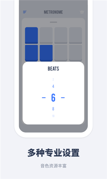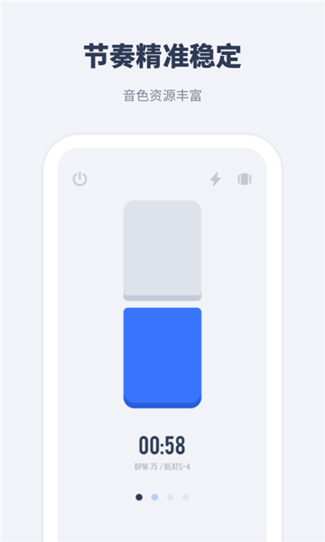节拍器大师这款软件能够帮助们快速的学习音乐,使用这个节拍器软件的同时,让用户体验出优质音乐演奏的效果,还可以在里面感受到节拍器的练习,给我们带来一个非常专业的音乐课程,拥有专业的乐师进行参与设计,非常好用的节拍器的软件,如果你也想用的话,就赶紧试用吧。