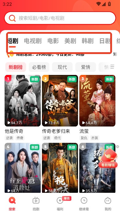 可以直接搜索框输入关键词,搜短剧,搜电影,电视剧,综艺等一网打尽