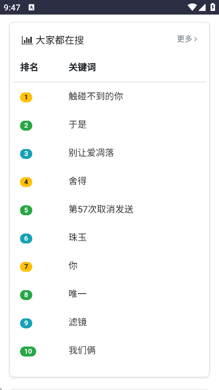 1、搜索功能超强大,无论你是记得歌名,还是只想起歌手,都能借此精准定位你想听的歌曲,迅速开启音乐之旅。