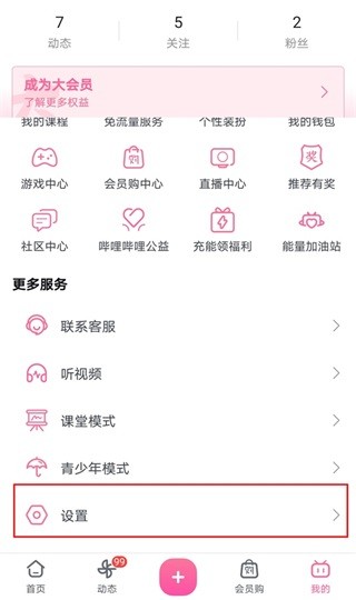 1、首先打开哔哩哔哩个人中心,点击设置;