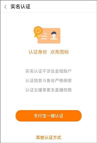 5、第一、二步我们登陆就已经完成了,接下来就要完成认证部分,斗鱼认证有两种选择,一种是“支付宝认证”,另一种是”身份证认证“,点击其它认证。二选一,随便选,看你那个顺手就选那个。