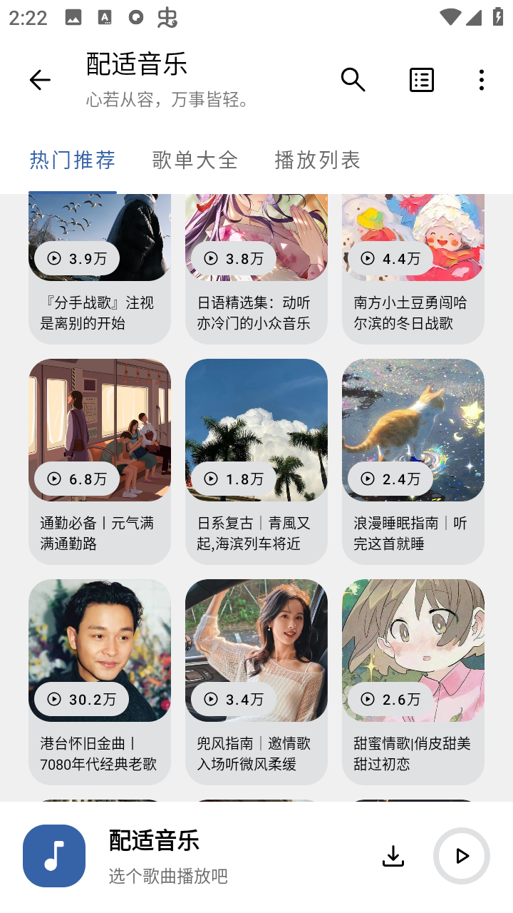 配适音乐app拥有庞大的音乐库,涵盖各种风格的歌曲,如流行、摇滚、电子、古典、嘻哈等,满足用户的不同音乐需求。
